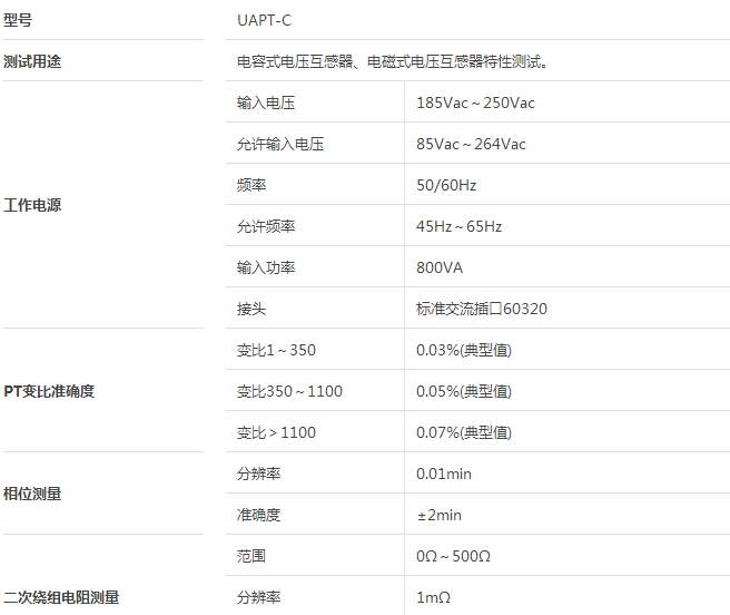 UAPT-C 電容式電壓互感器分析儀技術參數