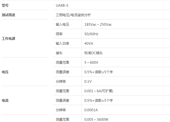 UAXB-S 三相諧波分析儀技術(shù)參數(shù)